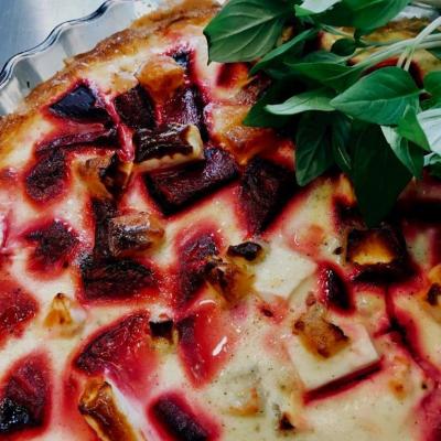 • Zapiekanka z ciasta francuskiego/szpinak/pomidorki koktajlowe/mozzarella/sos aioli
